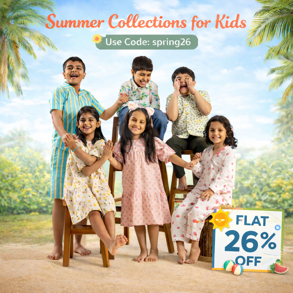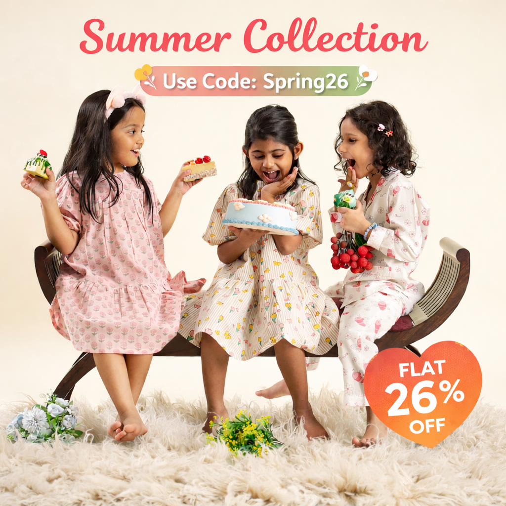 Organic Cotton Night Suit - Ice Cream Cone Design Hand Block Printed for Girls