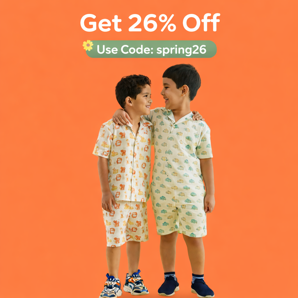 Animal Parade Design Hand Block Printed Cotton Night Suit for Boys